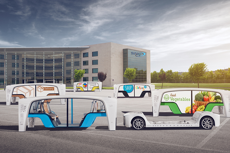 Подобный автомобиль может использоваться как беспилотное такси или же перевозить грузы, при этом модульная конструкция и быстросъемные капсулы позволят легко менять его предназначение, оставляя то же самое шасси.