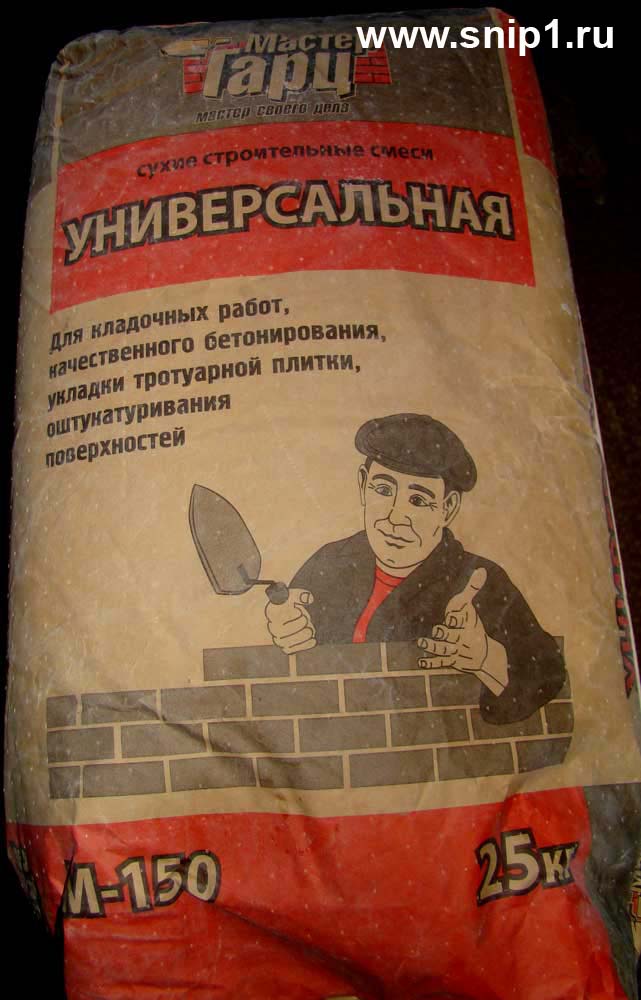 Смесь цементно-песчаная УНИВЕРСАЛЬНАЯ М-160 предназначена для проведения кладочных работ, заливки лёгких фундаментов и бетонирования полов, укладки тротуарной плитки, для штукатурных работ, а также обработки швов при монтаже железобетонных изделий.