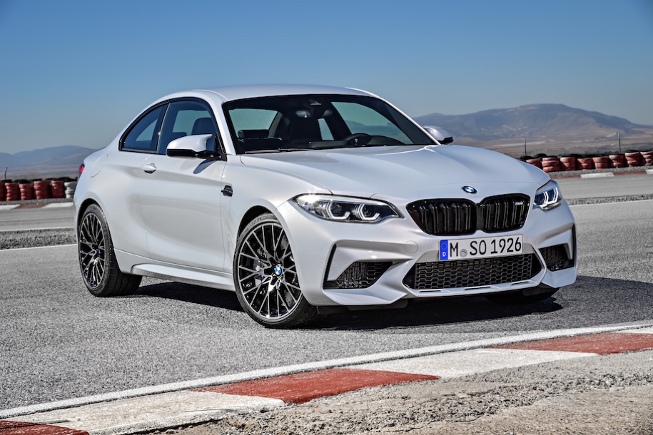 От обычной M2 спорткупе Competition отличается глянцево-черной решеткой радиатора, боковыми зеркалами иной формы, передним бампером с увеличенными воздухозаборниками и адаптивными светодиодными фарами. В стандартное оснащение входит пакет Shadow Line (окраска всех молдингов в черный цвет), 19-дюймовые колесные диски, активный задний дифференциал, а также перенастроенная подвеска и управляющая электроника. Тормозные механизмы M Sport — опция.