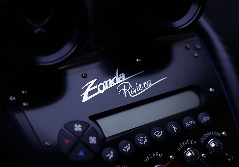 Zonda Riviera выкрашена в перламутровый цвет (до аварии цвет машины был желтым), вставки выполнены из лакированного карбона. В отличие от базового варианта, суперкар оборудован задним спойлером, воздухозаборником на крыше, плавником и передним сплиттером.