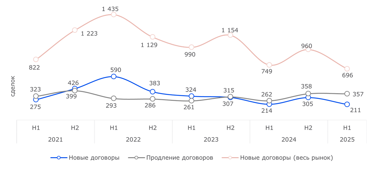 Количество сделок по продлению договоров аренды в ключевых ТЦ эмирата в I полугодии 2025 г. превысило 350 сделок, что на 36% выше показателя аналогичного периода 2024 г.