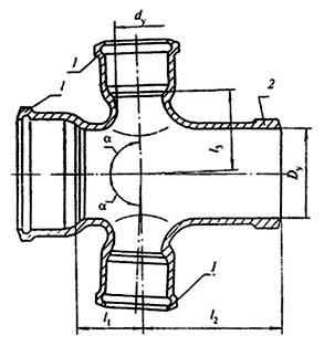 Пример условного обозначения крестовины прямой Dу = 100 мм и dу = 50 мм: КП-100 x 50 ГОСТ 6942-98