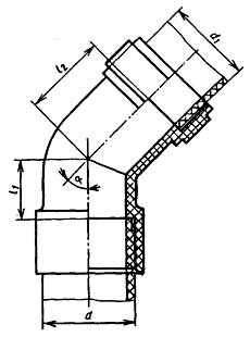 Пример условного обозначения отвода типа СР с углом a = 87° 30′ из ПНД для соединения с трубами 50 мм и 40 мм: