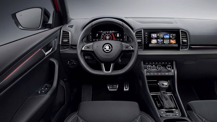 В список оснащения Skoda Karoq Sportline войдет спортивный обвес, 18- или 19-дюймовые колесные диски, черные детали экстерьера, спортивные кресла, руль, стальные педали и фоновая подсветка салона.