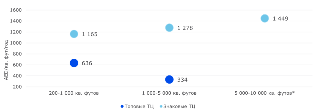 «Топовые» — Dubai Marina Mall, Dubai Hills Mall, Mirdif City Centre и Dubai Festival City Mall, крупные ТЦ с профессиональной концепцией, сбалансированным составом арендаторов и высокой долей наиболее популярных международных брендов.