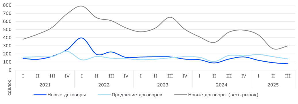 Ярким подтверждением данной тенденции стало отсутствие новых выходов отечественных брендов в III квартале 2025 года, что стало первым подобным случаем за последние 3,5 года. Также на количество новых выходов влияет ограниченное количество площадей, растущие арендные ставки и высокая конкуренция.