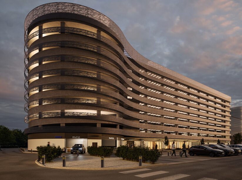 Основные входы в паркинг будут организованы на уровне земли с учетом принципов безбарьерной среды. На прилегающей территории обустроят проезды и тротуары, выполнят озеленение и установят наружное освещение. Пешеходные маршруты к зданию получат твердое нескользящее покрытие. Рядом с паркингом также предусмотрена плоскостная стоянка на 122 машино-места для временного хранения автомобилей.