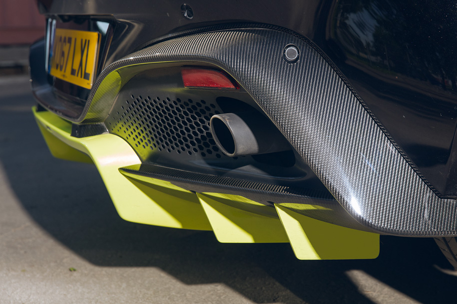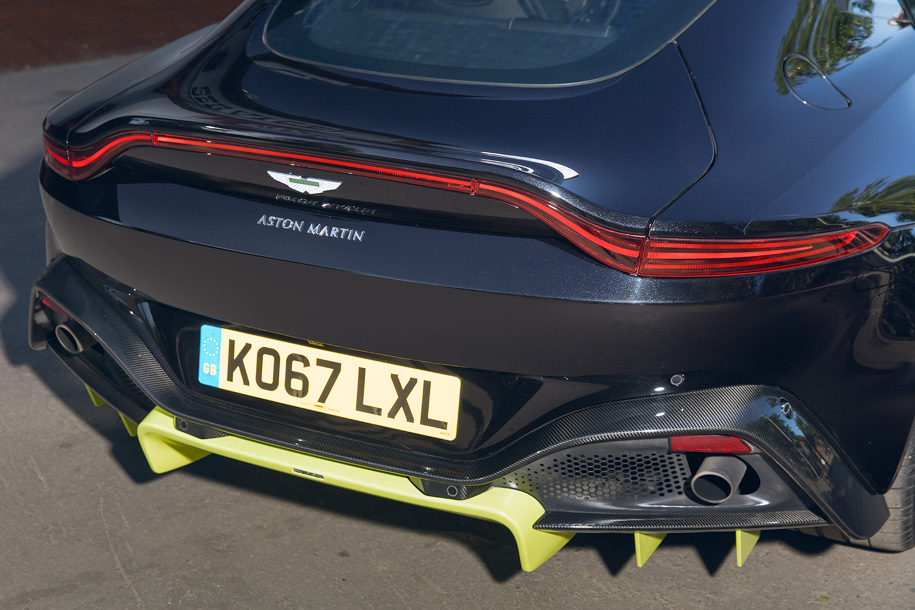 Значит, работает наставление Палмера? Vantage – спортсмен, это со ста метров видно. И если с передней частью «пережестили», то сзади точно чистый функционал: диффузор тут практически заменяет задний бампер, да еще и выделен желтым – как главный тезис длинного текста. Тонкие ленты задних фонарей, возможно, лучший элемент Vantage.