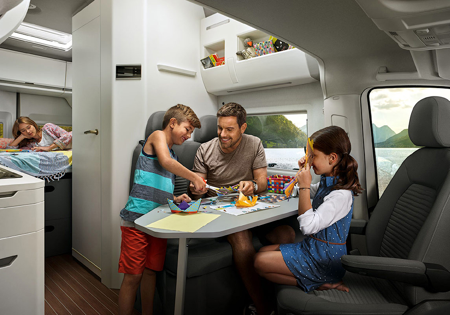 У «Фольксвагена» есть также «маленький» кемпер California, построенный на базе «Мультивэна». Она имеет подъемную крышу два спальных места и все необходимое для приготовления пищи. В России стоимость такой машины составляет 3 285 400 рублей.