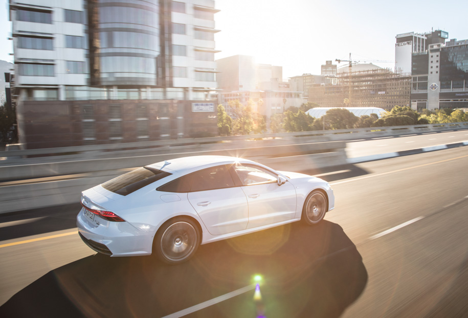 Все A7, представленные на данный момент, являются так называемыми «мягкими гибридами». Это значит, что они оснащены 48-вольтовой бортовой сетью, стартером-генератором с ременным приводом и отдельной батареей. Все это позволяет чуть расширить функционал системы старт-стоп: можно глушить двигатель заранее перед остановкой, а заводить его через пару мгновений после трогания. В идеале таким образом можно наэкономить до 0,7 литра топлива на сотню.