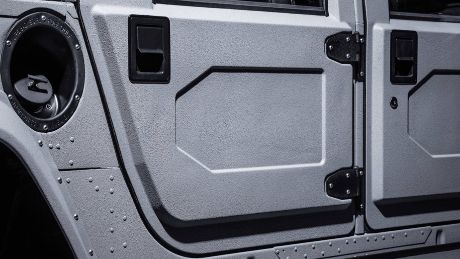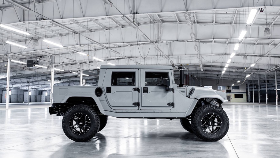Первый вариант рестомода Hummer H1 — Launch Edition с кузовом «пикап» — от других машин отличается только внешним видом. Внедорожник выкрашен в серый цвет и укомплектован силовым обвесом.