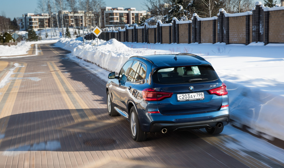 В базе BMW X3 xDrive20d стоит от 3,12 миллиона рублей, но на нашей машине установлен еще и «локальный» пакет М-спорт за 330 тысяч рублей, включающий в себя обвес кузова с особыми бамперами, 18-дюймовые колесные диски, спортивные кресла и М-отделку салона, подогреваемый М-руль и адаптивное рулевое управление, светодиодные фары и еще много всего по мелочи.