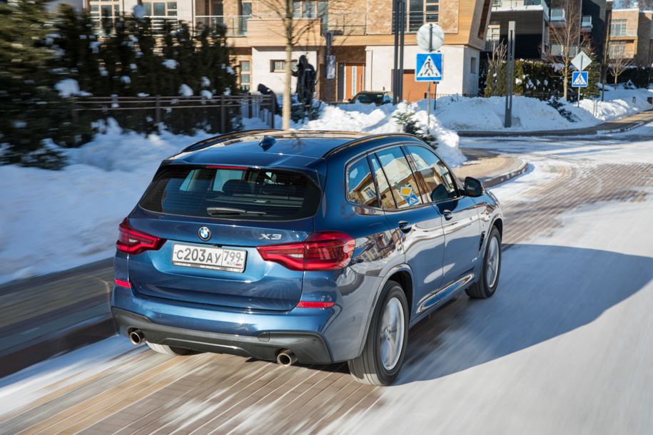 Зато в остальном все, что касается железок, в Х3 сделано на отлично. Слаженность работы силовой установки – эталонная. Взаимопонимание между восьмиступенчатой автоматической коробкой передач и дизельным мотором такое, словно эти двое знакомы со школьной скамьи. Полный привод настроен восхитительно! С ярким заднеприводным характером, благодаря которому «икс-третий» игриво повиливает кормой даже с включенной системой стабилизации, а с деактивированным трекшн-контролем допускает волнующие водительское эго скольжения.
